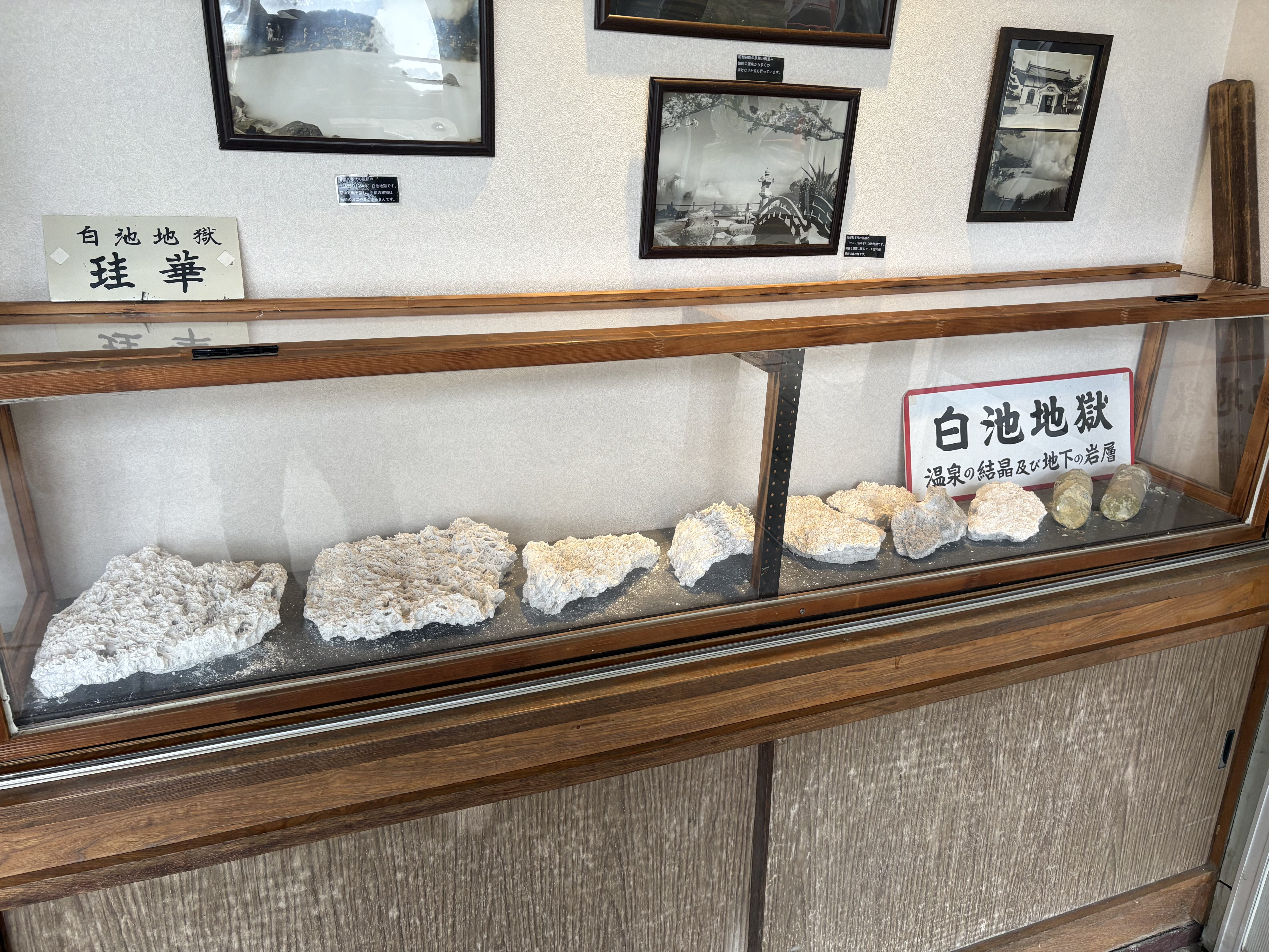 ピラルクの剥製や温泉の結晶などが